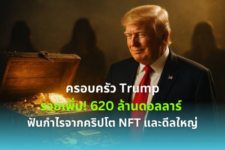 แม้มูลค่าทรัพย์สินรวมของโดนัลด์ ทรัมป์ อดีตประธานาธิบดีสหรัฐฯ จะยังอยู่ที่ประมาณ 6.4 พันล้านดอลลาร์สหรัฐ แต่รายงานล่าสุดจาก Bloomberg Billionaires Index ชี้ว่า ทรัมป์และครอบครัวมีทรัพย์สินจากการลงทุนในคริปโตเคอร์เรนซีรวมแล้วประมาณ 620 ล้านดอลลาร์ ซึ่งนับเป็นส่วนใหม่ที่เข้ามาเติมความมั่งคั่งในช่วงไม่กี่เดือนที่ผ่านมา