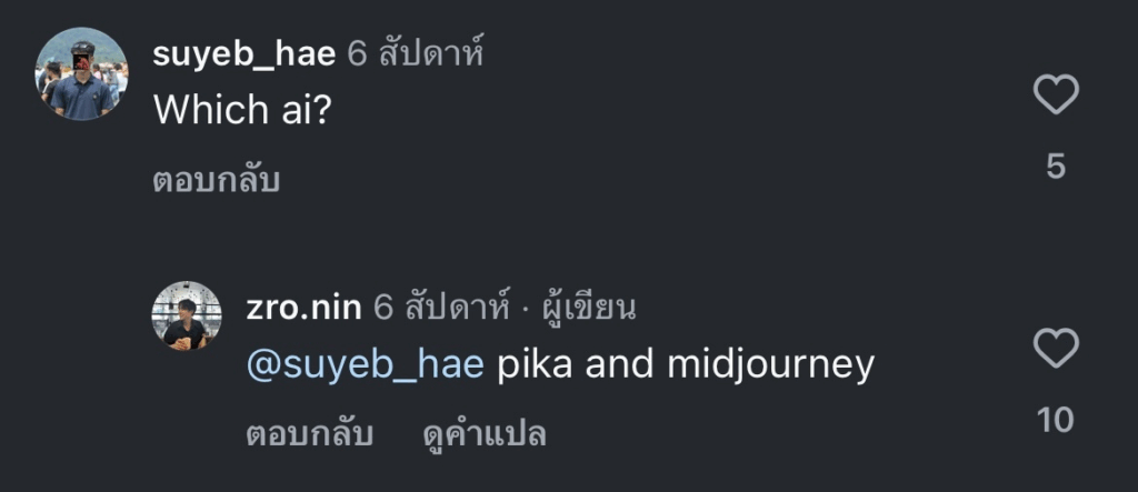 หลังโพสต์ได้ไม่นาน คลิปนี้ก็กลายเป็นไวรัลทันที คนแห่คอมเมนต์กันสนั่น ทั้งประทับใจ ทั้งสงสัย ทั้งอยากรู้ว่า เขาใช้เครื่องมืออะไรช่วยทำบ้าง ซึ่งเจ้าตัวก็ไม่กั๊ก บอกหมดว่าเบื้องหลังความน่าทึ่งนี้ได้ใช้ AI อย่าง Pika และ Migjourney ช่วยทำ