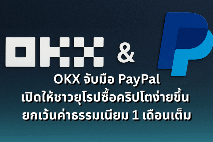 OKX หนึ่งในแพลตฟอร์มแลกเปลี่ยนคริปโตเคอร์เรนซีชั้นนำ ได้ประกาศความร่วมมือครั้งสำคัญกับ PayPal ยักษ์ใหญ่ด้านการชำระเงินเมื่อวันที่ 14 กรกฎาคมที่ผ่านมา โดยเปิดให้ผู้ใช้งานในเขตเศรษฐกิจยุโรป (EEA) สามารถใช้บัญชี PayPal เพื่อซื้อสินทรัพย์ดิจิทัลได้โดยตรง และเพื่อเป็นการฉลองความร่วมมือในครั้งนี้ OKX ได้จัดแคมเปญพิเศษ โดยจะยกเว้นค่าธรรมเนียมทั้งหมดสำหรับการซื้อและฝากคริปโตผ่าน PayPal เป็นเวลาหนึ่งเดือนเต็มสำหรับผู้ใช้ในยุโรป