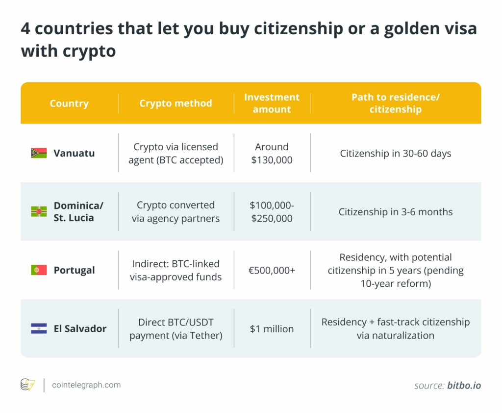 อย่างที่ทราบกันดีว่า ปัจจุบันหลายประเทศได้เสนอโอกาสในการได้รับสถานะพลเมืองหรือสิทธิพำนักถาวร แลกกับการลงทุนโดยใช้คริปโตเคอร์เรนซี ตั้งแต่เส้นทางสู่การได้รับสัญชาติแบบเร่งด่วนในวานูอาตูและเอลซัลวาดอร์ ไปจนถึงเส้นทางพำนักระยะยาวในโปรตุเกสและคาซัคสถาน