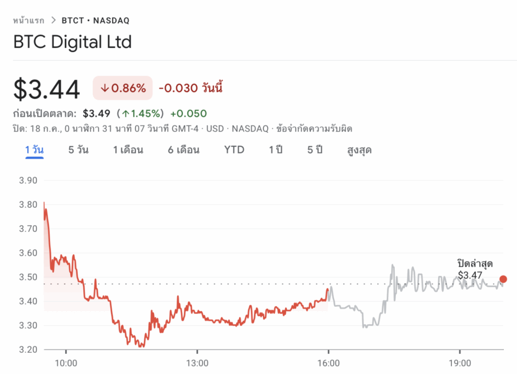 บริษัทเทคโนโลยีเหมืองขุดคริปโตอย่าง BTC Digital ซึ่งจดทะเบียนใน Nasdaq ภายใต้ชื่อย่อหุ้น “BTCT” ได้ประกาศการเปลี่ยนแปลงเชิงกลยุทธ์ครั้งสำคัญเมื่อวานนี้ (17 ก.ค.) โดยบริษัทจะหันมามุ่งเน้นที่การลงทุนใน Ethereum (ETH) อย่างเต็มตัว พร้อมทั้งเผยว่า บริษัทของพวกเขาระดมทุนได้กว่า 6 ล้านดอลลาร์สหรัฐฯ
