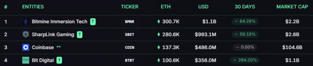 ทั้ง 4 บริษัทชั้นนำแห่งนี้ ถือครอง Ethereum จำนวนรวมกันกว่า 714,000 ETH คิดเป็นมูลค่ามหาศาลกว่า 2.4 พันล้านดอลลาร์สหรัฐฯ ตามข้อมูลจาก StrategicEthReserves.XYZ