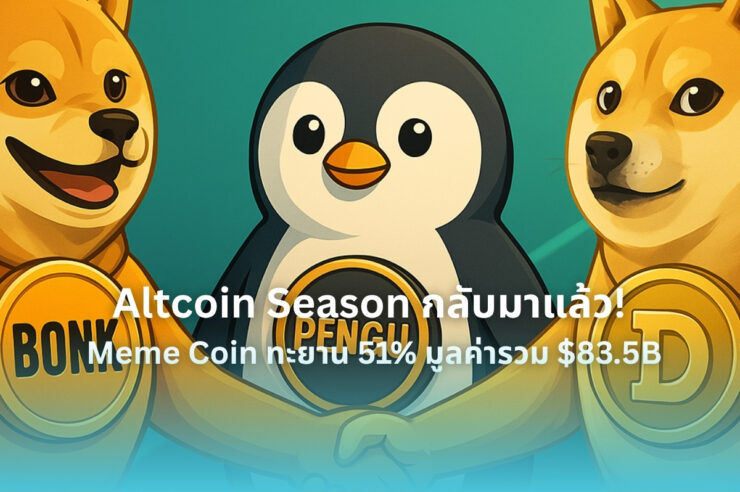 ภาพรวมตลาด Meme Coin บ่งชี้ถึงการกลับมาของกระแสเก็งกำไร โดย Dogecoin เพิ่มขึ้นเกือบ 20% และ Shiba Inu โตอีกกว่า 10% ขณะที่เหรียญน้องใหม่อย่าง FLOKI และ SPX ก็ทำกำไรสูงตามกระแส Altcoin Season ที่เริ่มชัดเจนอีกครั้ง