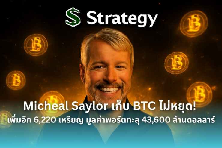 ล้านเหรียญ ซื้อเพิ่ม 6,220 BTC ดันพอร์ตทะลุ 607,000 BTC มูลค่ารวมกว่า 43,600 ล้านดอลลาร์