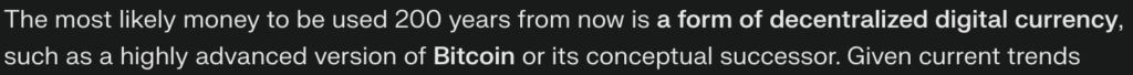 อ้างอิงจากโพสต์โซเชียลมีเดียหนึ่งที่กำลังเป็นที่ถูกพูดถึงในขณะนี้ เรื่องมีอยู่ว่าคุณ Neil Jacobs บิตคอยน์เนอร์ผู้ก่อตั้ง FOMO21Shop ได้ทำการทดลองสนุก ๆ โดยไปถาม AI grok ของ Elon Musk ดูว่า “อีก 200 ปีถัดจากนี้เงินสกุลใดจะถูกใช้กันอย่างแพร่หลายมากที่สุด”