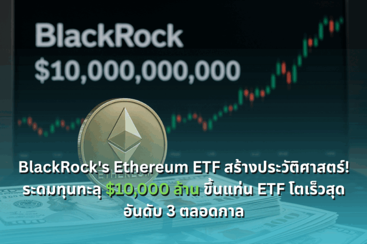 นาย Eric Balchunas นักวิเคราะห์ ETF ของ Bloomberg ได้รายงานเมื่อวันพฤหัสบดีที่ผ่านมาว่า กองทุน iShares Ethereum ETF (ETHA) ของ BlackRock ได้กลายเป็นกองทุน ETF ที่สามารถระดมทุนจนมีสินทรัพย์ภายใต้การบริหาร (AUM) แตะระดับ 1 หมื่นล้านดอลลาร์สหรัฐได้เร็วที่สุดเป็นอันดับ 3 ในประวัติศาสตร์ โดยใช้เวลาเพียง 251 วันนับตั้งแต่เปิดตัวเมื่อหนึ่งปีที่แล้ว “น่าทึ่งมากที่ ETHA ใช้เวลาเพียง 10 วันในการเติบโตจาก 5 พันล้านดอลลาร์มาสู่ 1 หมื่นล้านดอลลาร์” Balchunas กล่าว พร้อมเรียกการพุ่งขึ้นครั้งนี้ว่าเป็น “แท่งเทียนแห่งพระเจ้า” (God candle)