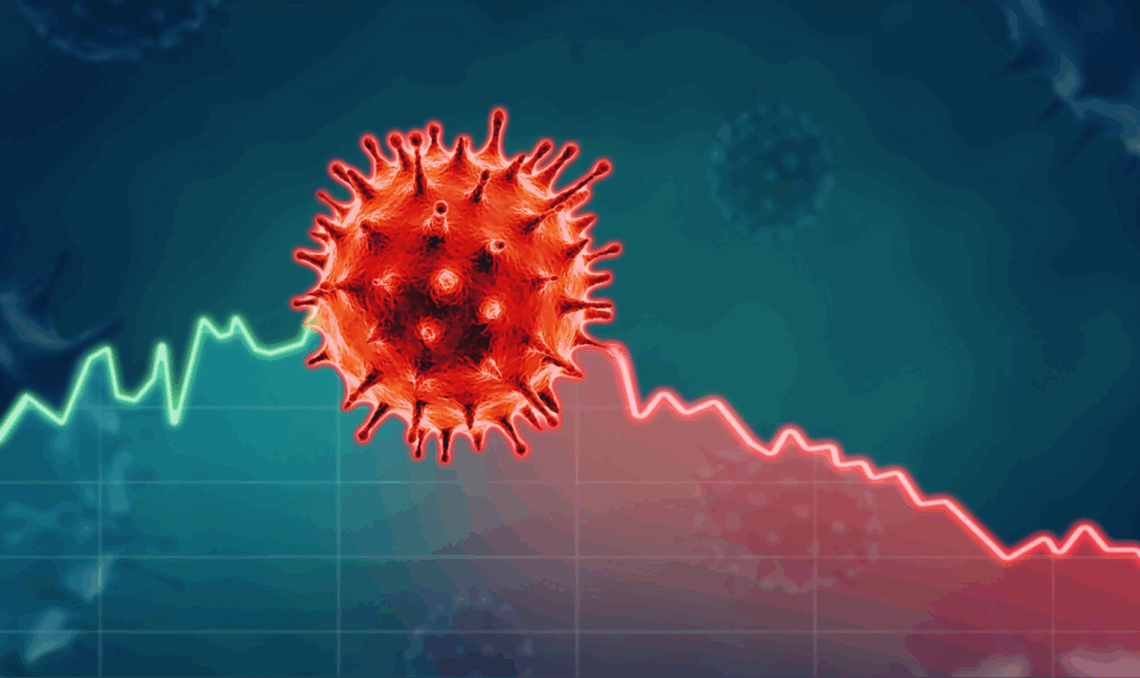 สำหรับตลาดหุ้นทั่วโลกนั้นร่วงลงอย่างหนัก ในเดือนมีนาคม 2020 โดยเฉพาะดัชนีดาวโจนส์ที่สูญเสียมูลค่าไปเกือบ 37% อย่างไรก็ตาม การเข้าแทรกแซงอย่างรวดเร็วของธนาคารกลางและรัฐบาลทั่วโลกได้ช่วยให้ตลาดฟื้นตัวได้อย่างรวดเร็ว