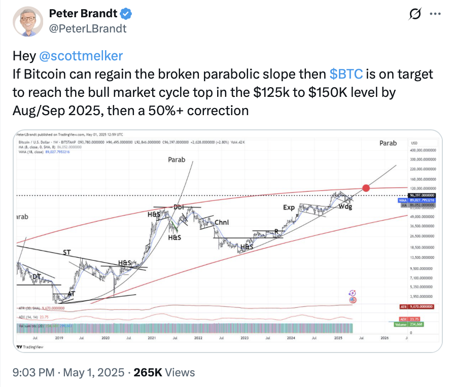 ดังนั้น มีความเป็นเป็นได้ว่า Bitcoin จะไปได้ถึง $125,000-$150,000 ภายในช่วง สิงหาคม ถึง กันยายน เพราะเขาไม่เชื่อว่าหนี้ของรัฐบาลและการพิมพ์เงินอย่างต่อเนื่องจะส่งผลทำให้ Bitcoin ต้องปรับตัวขึ้นตามจนทำราคาเหรียญละเป็นล้าน