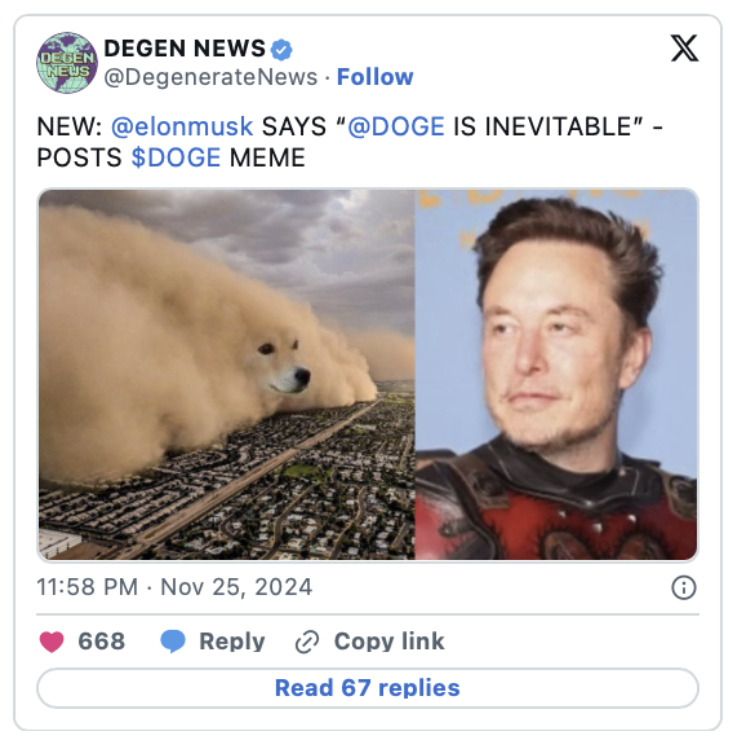 ความสำเร็จของ Dogecoin ไม่ได้มาจากเทคโนโลยีซับซ้อนหรือแผนงานที่ชัดเจน แต่มาจากพลังของชุมชนและความเชื่อมั่นในความบ้าบิ่น โดยมีมหาเศรษฐีเบอร์ 1 ของโลก Elon Musk เข้ามาเป็นผู้ผลักดันให้กระแสนี้ ไปสู่ระดับโลก ทำให้เงินจำนวนมหาศาลเปลี่ยนมือไปสู่กลุ่มนักลงทุนที่กล้าเสี่ยง