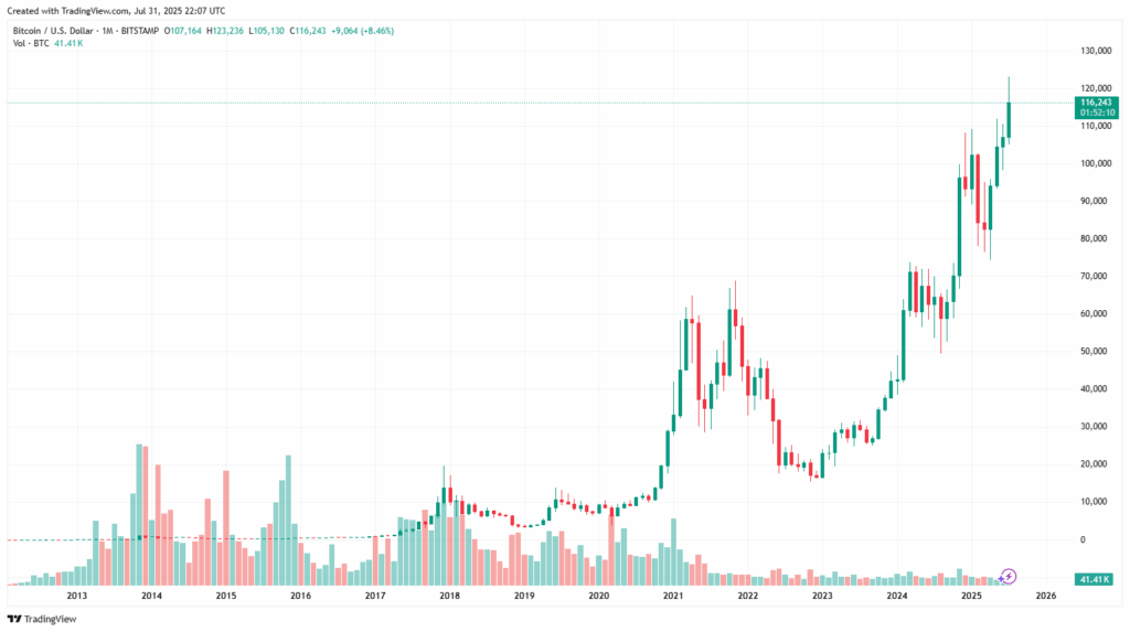 ภาพเดิม ราคา Bitcoin พุ่งทะยานอย่างบ้าคลั่งในเวลาสั้นๆ (เช่น ในปี 2017, 2021) ทำกำไรมหาศาล แล้วก็พังทลายลงมาอย่างรุนแรง นักลงทุนต้องจับจังหวะเข้า-ออกให้ดีเหมือนการวิ่งแข่งระยะสั้น