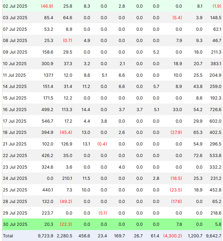 กระแสเงินทุนไหลเข้า-ออก Ethereum ETF (หน่วย: ล้านดอลลาร์สหรัฐ) ที่มา: Farside Investors