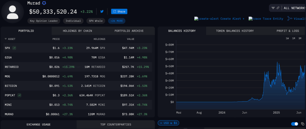 ในช่วงก่อนหน้านี้ ประมาณต้นปี 2025 ตลาดเหรียญมีมได้เผชิญหน้ากับขาลงครั้งใหญ่หลังจากที่ทรัมป์ได้ออกเหรียญมีมของตนเองออกมาส่งผลทำให้เกิดความเสียหายเป็นวงกว้าง ซึ่ง Murad เองก็ได้รับผลกระทบ พอร์ตของเขาเสียหายอย่างหนักแต่เขาก็อดทนไม่ขาย เพราะเขายังเชื่อว่าเหรียญที่เขาศรัทธา เช่น SPX6900 จะกลับมา