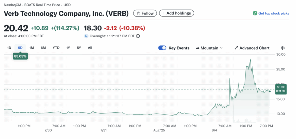 หลังจากตลาดรับรู้ข่าวนี้ ราคาหุ้นของบริษัท Verb Technologies (VERB) ในตลาดหุ้น Nasdaq ก็พุ่งขึ้นอย่างรุนแรงกว่า 114% โดยปิดราคาที่ 20.42 ดอลลาร์ ในทางกลับกัน ราคาเหรียญ TON ยังคงมีการซื้อขายอยู่ที่ 3.37 ดอลลาร์ ซึ่งถือว่ายังไม่มีการเปลี่ยนแปลงใด ๆ ที่โดดเด่น