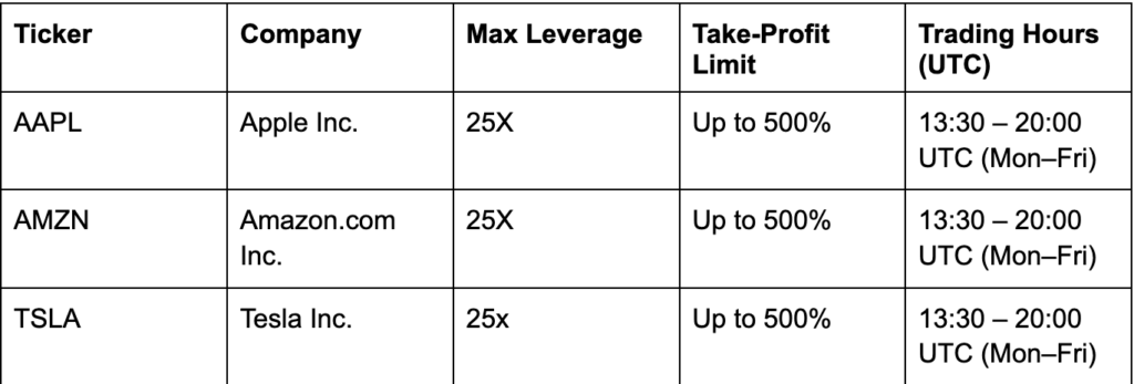 ในประกาศเมื่อวันพุธที่ 6 สิงหาคม PancakeSwap ระบุว่าจะเริ่มให้บริการสัญญาฟิวเจอร์สแบบไม่หมดอายุ (Perpetual Contracts) ที่อ้างอิงกับราคาหุ้นดังกล่าว ซึ่งจะเปิดโอกาสให้นักเทรดสามารถเปิดสถานะ Long (ซื้อ) หรือ Short (ขาย) ได้ด้วยเลเวอเรจสูงสุดถึง 25 เท่า โดยธุรกรรมทั้งหมดจะเกิดขึ้นบนบล็อกเชนโดยตรงจากวอลเล็ตของผู้ใช้งาน แต่จะจำกัดเวลาการซื้อขายให้สอดคล้องกับเวลาทำการของตลาดหุ้น