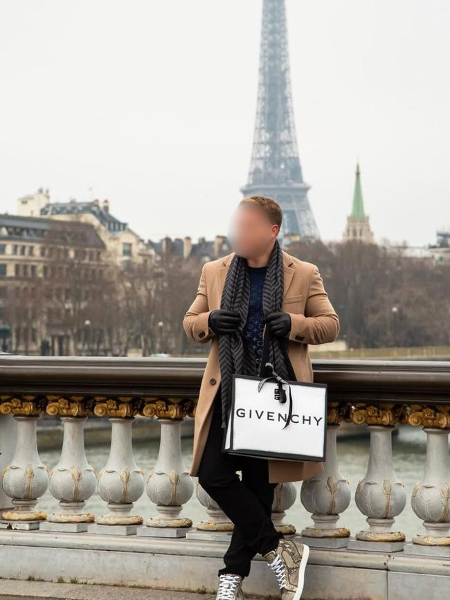 เขาถูกพบเห็นขณะถือกระเป๋าแบรนด์เนมอยู่หน้าแลนด์มาร์กสำคัญ | ภาพ: Asia Pacific Press