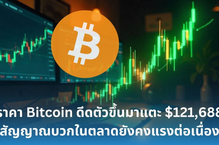 ราคาของ Bitcoin (BTC) ล่าสุดดีดตัวขึ้นมาอยู่ที่ $121,688 เพิ่มขึ้นมากว่า 2.2% จากวันก่อนหน้า โดยตลอด 24 ชั่วโมงที่ผ่านมา ราคาทำจุดสูงสุดการพุ่งขึ้นครั้งนี้เกิดจากแรงซื้อที่หนาแน่นทั้งจากนักลงทุนสถาบันและเจ้ามือรายใหญ่ส่งผลให้ Bitcoin ทะลุแนวต้านสำคัญที่ 118,000 ดอลลาร์ได้อย่างมั่นคง