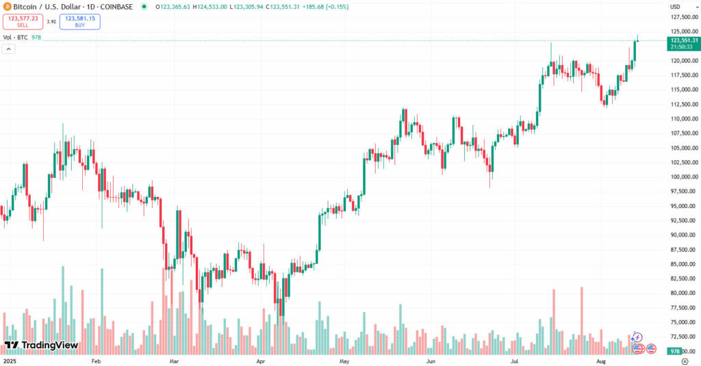 BTC พุ่งแตะจุดสูงสุดใหม่บน Coinbase ที่มา: TradingView