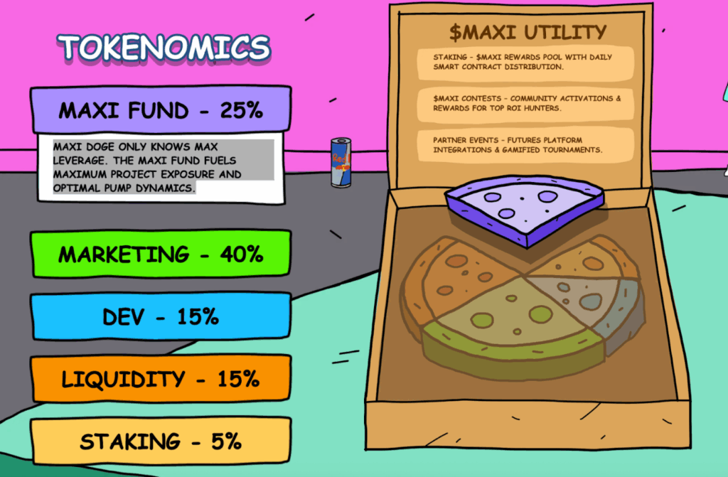 นอกจากนี้ Maxi Doge ยังให้ความสำคัญกับการตลาดอย่างมาก โดยจัดสรร 40% ของโทเค็นทั้งหมด เพื่อใช้ในกิจกรรมทางการตลาด และยังมี “Maxi Fund” หรือกองทุนสำหรับสร้างกระแส เพื่อผลักดันโปรเจกต์อย่างเต็มที่ แสดงให้เห็นว่าในโลกของเหรียญมีม การสร้างกระแสและแรงสนับสนุนจากชุมชน มีความสำคัญยิ่งกว่าความซับซ้อนทางเทคนิค