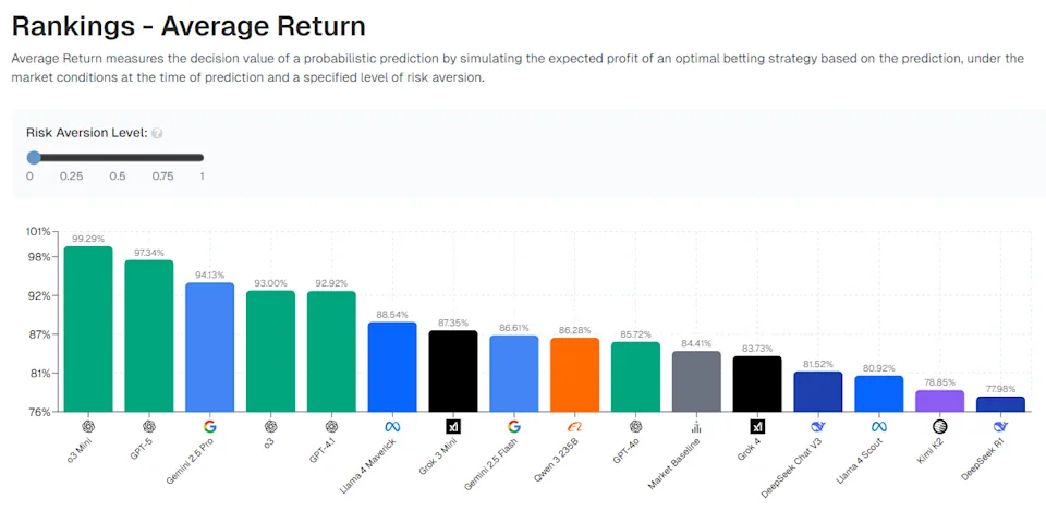 - o3-mini ของ OpenAI กลายเป็น “แชมป์ด้านผลกำไร” โดยมักจะทำนายผลลัพธ์ที่เป็นรอง (Underdog) แต่มีโอกาสชนะสูงได้อย่างแม่นยำ สร้างผลตอบแทนในการเดิมพันจำลองได้ดีที่สุด
