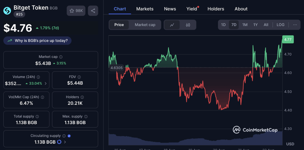 ไปกันต่อกับ Bitget token ที่ถึงแม้จะไม่มีข่าวเด่นประเด็นร้อนเหมือนกับเหรียญก่อนหน้าแต่ทางโปรเจกต์ก็ได้แสดงศักยภาพอันน่าเหลือเชื่อและทำผลงานได้เหนือกว่าโปรเจกต์ส่วนใหญ่ในตลาด