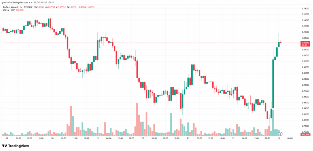 นักวิเคราะห์รายนี้คาดการณ์ว่าหากราคาสามารถยืนอยู่ได้ เป้าหมายถัดไปคือแนวต้านที่ 3.41 ดอลลาร์ ทั้งนี้ ภายในเวลา 10.00 น. ตามเวลาตะวันออกของสหรัฐฯ ราคา XRP ได้ฟื้นตัวกลับขึ้นมาอยู่ที่ระดับ 2.99 ดอลลาร์ได้สำเร็จ