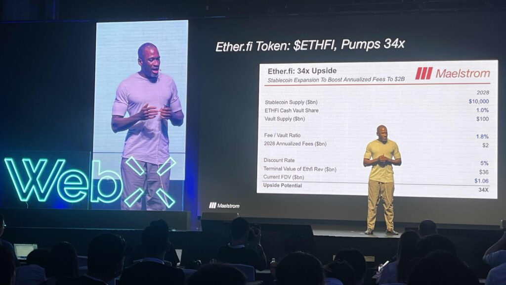โปรเจกต์แรก: Ether.fi (ETHFI) – เสาหลักด้านการใช้จ่าย Hayes มองว่า ETHFI จะเข้ามามีบทบาทสำคัญในการ “ใช้จ่าย” เพราะเทคโนโลยีปัจจุบันทำให้ผู้คนสามารถจ่ายเงินด้วยคริปโตผ่านบัตรต่างๆ ได้โดยตรง ยิ่งมีคนใช้มากขึ้น โปรเจกต์ก็จะยิ่งเติบโต โดยเขาคาดว่าราคา ETHFI จะพุ่งขึ้น 34 เท่าจากราคาปัจจุบัน