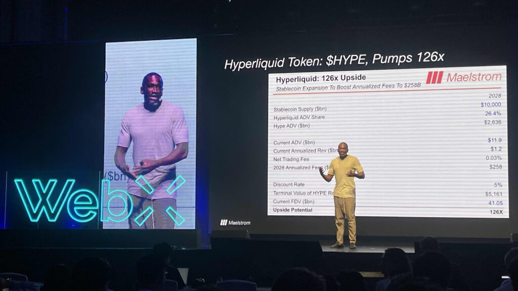 โปรเจกต์ที่สาม : Hyperliquid (HYPE) – เจ้าแห่งการเทรด Hayes ยกให้ Hyperliquid เป็นแพลตฟอร์มเทรด DeFi อันดับหนึ่งในปัจจุบัน เติบโตแรงจากความต้องการเทรดแบบไร้ข้อจำกัด เขาเชื่อว่า Hyperliquid จะโตแซงหน้า Binance และ Bybit กลายเป็นกระดานเทรดใหญ่ที่สุดในโลก พร้อมคาดการณ์ราคาพุ่ง 126 เท่า