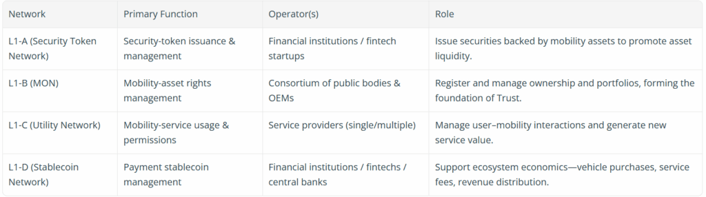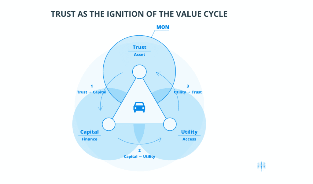 เพื่อแก้ไขอุปสรรคต่าง ๆ เหล่านี้ โตโยต้าจึงได้เสนอแนวคิด Mobility Orchestration Network (MON) ซึ่งเป็นสถาปัตยกรรมบล็อกเชนในระดับโปรโตคอล มีเป้าหมายเพื่อบริหารจัดการความน่าเชื่อถือ และปลดล็อกมูลค่าของสินทรัพย์ที่เกี่ยวข้องกับการเคลื่อนที่ โดยสามารถก้าวข้ามข้อจำกัดทั้งในระดับสถาบัน อุตสาหกรรม และประเทศ