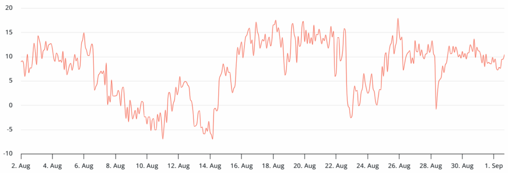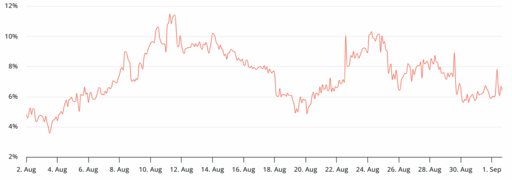 ขณะนี้ค่าพรีเมียมรายปีของสัญญาฟิวเจอร์สรายเดือนของ Bitcoin อยู่ที่ระดับ 7% ซึ่งอยู่ในกรอบที่เป็นกลาง (5% ถึง 10%) และไม่เปลี่ยนแปลงจากสัปดาห์ก่อนหน้า โดยครั้งสุดท้ายที่ตัวชี้วัดนี้แสดงสัญญาณบวกคือเมื่อวันที่ 24 สิงหาคม หลังจากที่ราคาพุ่งไปที่ 117,000 ดอลลาร์ จากสุนทรพจน์ของ เจอโรม พาวเวล