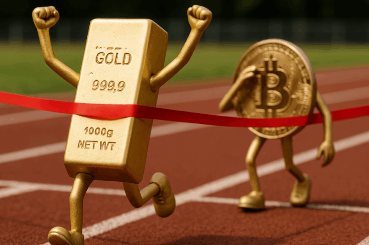 แมคโกลนระบุว่า ในช่วง 8 ปีที่ผ่านมา ดัชนี Bloomberg Galaxy Crypto และดัชนี S&P 500 มีราคา “คงที่เมื่อเทียบกับทองคำ” (flatlined vs. gold) ซึ่งหมายความว่าแม้ในรูปของเงินดอลลาร์ สินทรัพย์เหล่านี้จะมีมูลค่าเพิ่มขึ้นอย่างมาก แต่เมื่อวัดมูลค่าเทียบกับทองคำแล้ว กลับไม่ได้เพิ่มขึ้นเท่าใดนัก