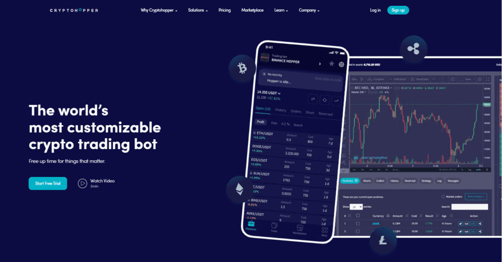 แพลตฟอร์มเทรดคริปโตที่ครบที่สุด รองรับหลาย Exchange มีบอทหลากหลาย เช่น DCA Bot, Grid Bot และ Signal Bot พร้อม Smart Trade Terminal ที่ช่วยตั้ง Stop-Loss หรือ Take-Profit อัตโนมัติ