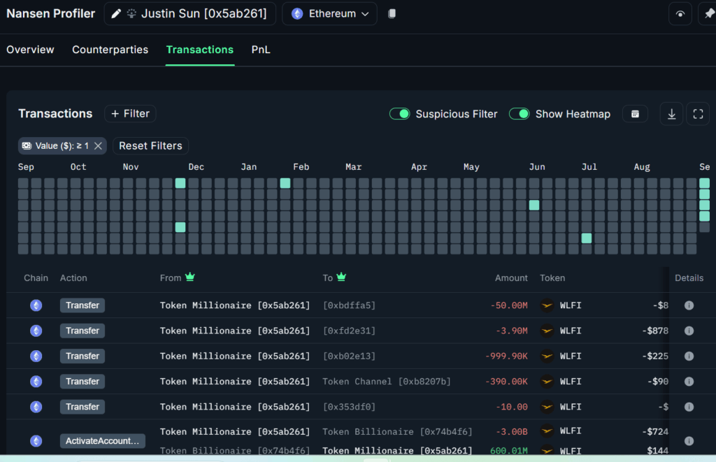 มีเงื่อนงำ? กระเป๋า ‘จัสติน ซัน’ ถูกแบล็กลิสต์ทันที หลังโอนเหรียญ WLFI 50 ล้านโทเคนเข้า Exchange
