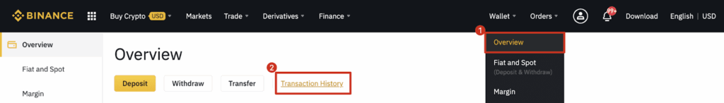 เริ่มต้นจากการเข้าไปที่ Wallet จากนั้นเลือก Transaction History และไปที่ Withdrawals เพื่อดูสถานะธุรกรรมของคุณ