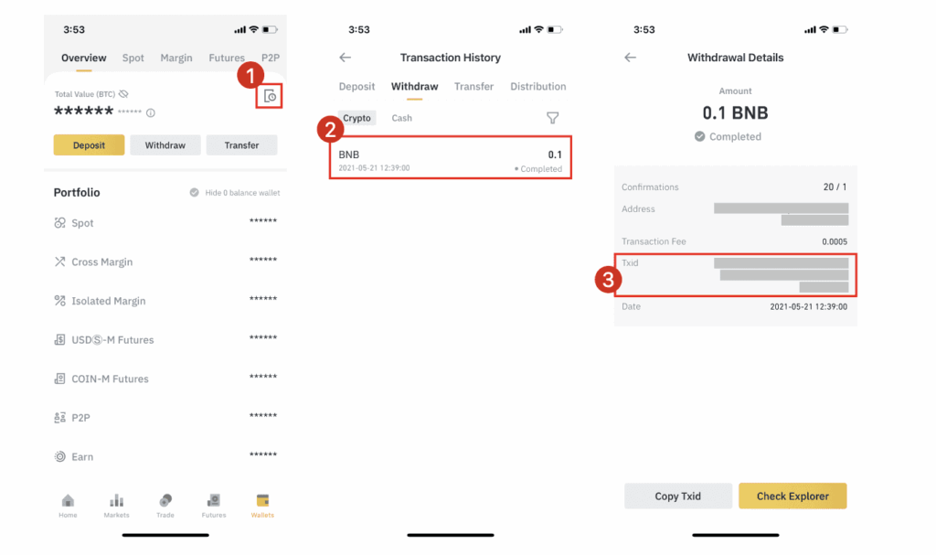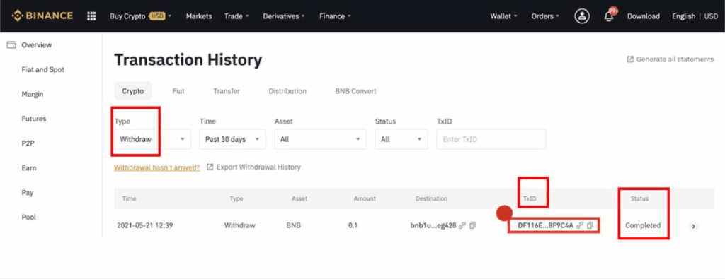 1) เช็กสถานะธุรกรรมใน Binance ก่อน
