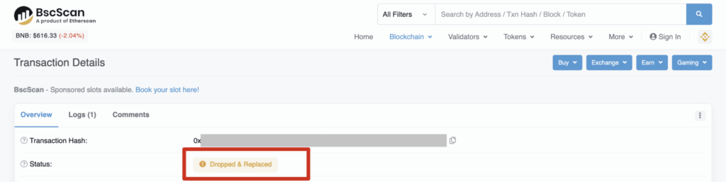 หากคุณใช้เครือข่าย Ethereum (ERC20) สำหรับธุรกรรมของคุณ ระบบจะนำคุณไปยัง Etherscan แต่หากคุณใช้ BNB Smart Chain (BEP20) ระบบจะนำคุณไปยัง BscScan