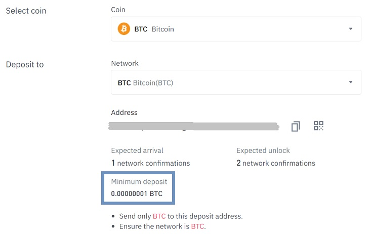 ยกตัวอย่างเช่น สำหรับ Bitcoin เงินฝากขั้นต่ำคือ 0.00000001 BTC