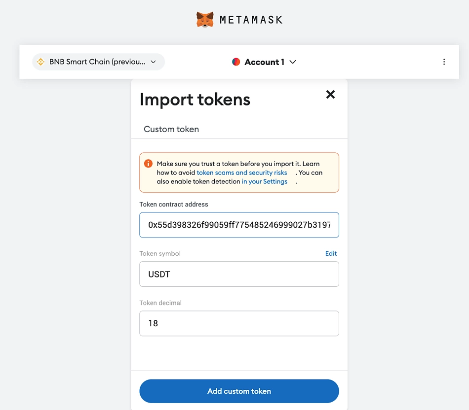 ในกรณีของกระเป๋าแบบ self-custody เช่น MetaMask คุณอาจต้องเพิ่ม Custom Token โดยตรวจสอบให้แน่ใจว่า คุณเลือกเครือข่ายที่ถูกต้องแล้ว