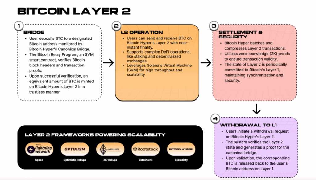 ในขณะที่ Ethereum มีโซลูชัน Layer-2 หลายแห่งที่แข่งขันกัน เพื่อดึงความสนใจ แต่Bitcoin Hyper กำลังสร้างโซลูชัน Layer-2 ที่มีประสิทธิภาพสูงเป็นตัวแรกสำหรับ Bitcoin ซึ่งเป็นการเปิดโอกาสให้บล็อกเชนที่น่าเชื่อถือที่สุดในโลกได้มีพื้นที่ในการขยายขนาด