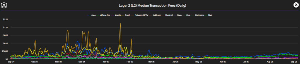 หลังจากการอัปเกรด Dencun ซึ่งช่วยลดต้นทุนการโพสต์ข้อมูล (blob) ค่าธรรมเนียมบนเครือข่ายเลเยอร์ 2 (L2) ส่วนใหญ่จึงลดลงมาอยู่ในระดับ “หลักเซนต์จนถึงไม่กี่สิบเซนต์” ต่อธุรกรรมเท่านั้น