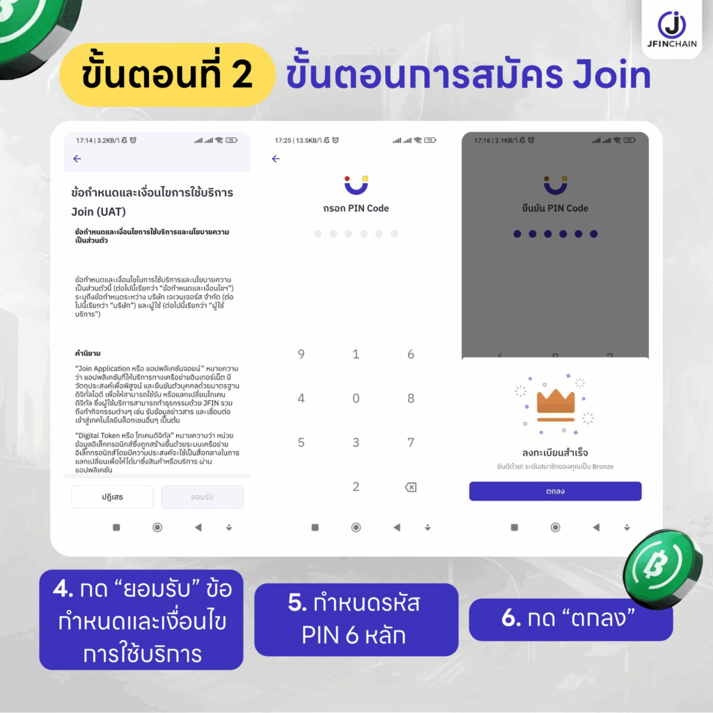 2.2 การยอมรับเงื่อนไข และการตั้งค่า PIN