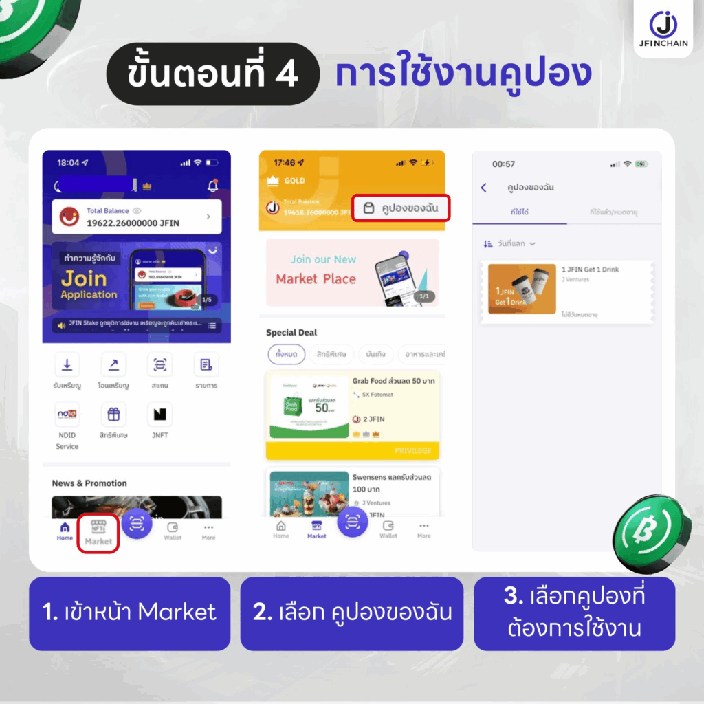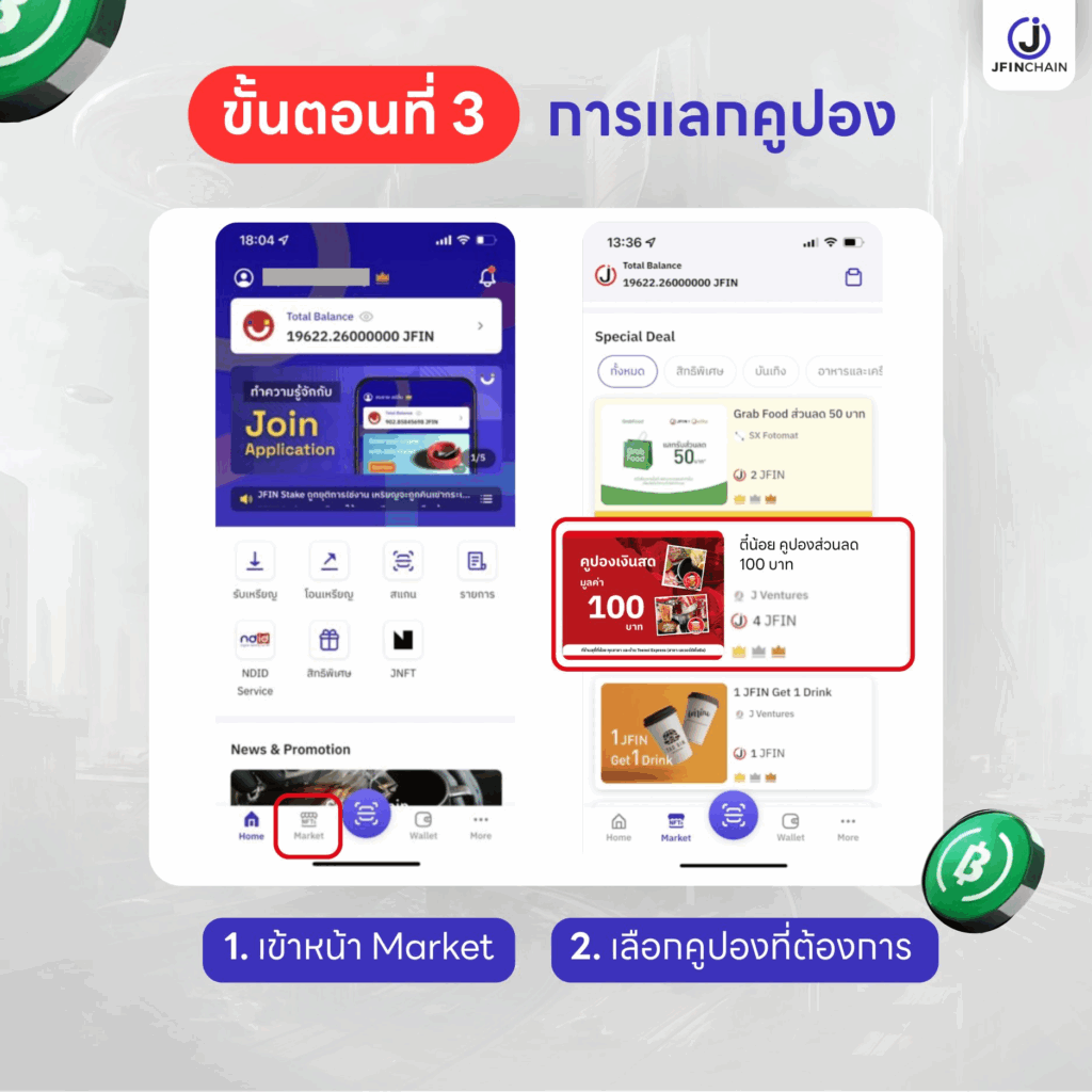 เมื่อมาถึงขั้นตอนนี้ ผู้ใช้งานจะมีบัญชีของทั้งฝั่ง Bitkub Next และแอปพลิเคชัน Join ซึ่งขั้นตอนถัดมาจะเป็นการแลกคูปอง