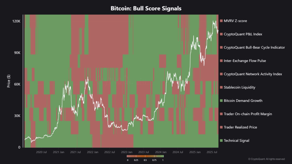 ตัวบ่งชี้ดัชนี Bull Score มีแนวโน้มขาลง ที่มา: CryptoQuant