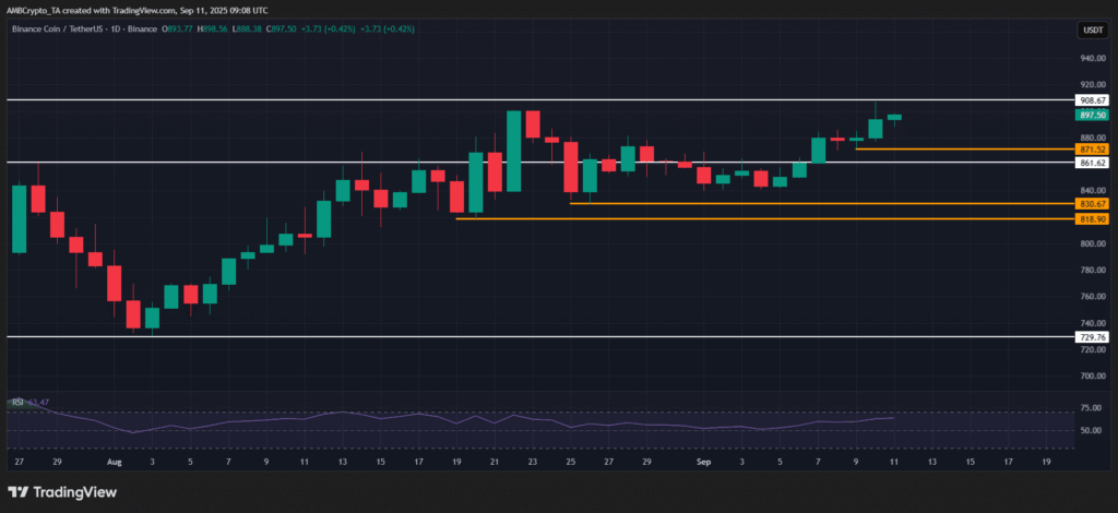 BNB พุ่งทำ All time High ใหม่ ! แตะ $908 หลังรายใหญ่แห่เข้าซื้อ พร้อมจับตาดีล Franklin Templeton