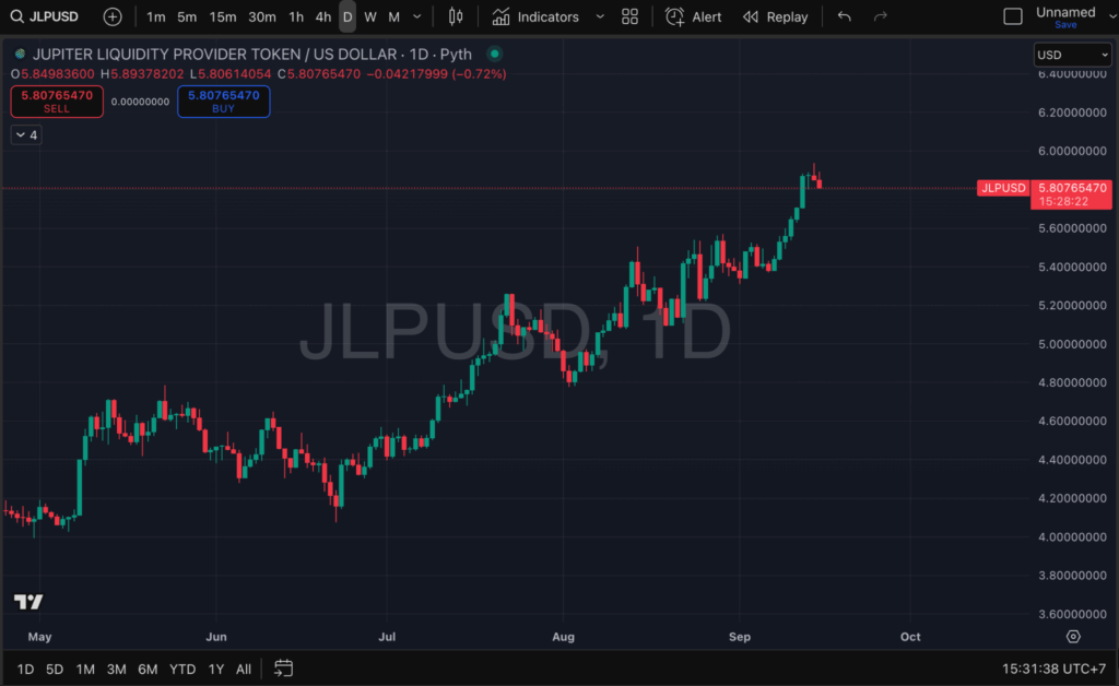 สำหรับนักลงทุนหลายคนที่คุ้นเคยกับแพลตฟอร์ม Jupiter อาจจะรู้จักแค่เหรียญ JUP ที่ใช้สำหรับการกำกับดูแล แต่ความจริงแล้ว Jupiter ยังมีอีกหนึ่งโทเคนที่น่าสนใจไม่แพ้กัน นั่นก็คือ โทเคน JLP (Jupiter Perpetuals Liquidity Provider) ซึ่งแม้จะถูกประเมินค่าต่ำเกินไป แต่กลับทำผลงานได้อย่างยอดเยี่ยม โดยปัจจุบันมีราคาอยู่ที่ 5.81 ดอลลาร์