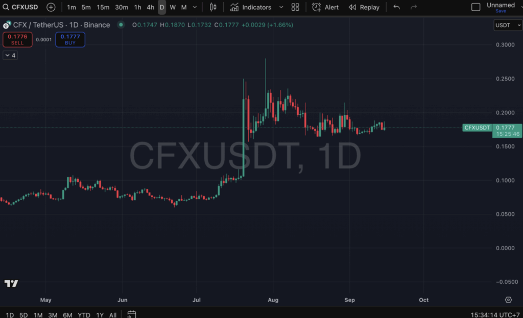 Conflux Network (CFX) เคยพุ่งขึ้นไปหลัก 100% ไปถึง $0.25 ประสิทธิภาพที่ยอดเยี่ยมนี้มาจากการอัปเกรดใหญ่ Conflux 3.0 ที่จะเพิ่ม TPS เป็น 15,000 ธุรกรรม/วินาที และสถานะพิเศษของ Conflux ในฐานะบล็อกเชนสาธารณะเพียงแห่งเดียวที่ได้รับการอนุมัติจากรัฐบาลจีน ทำให้มีโอกาสเป็นตัวแทนในการเข้าถึงตลาดจีนที่มีมูลค่ามหาศาล