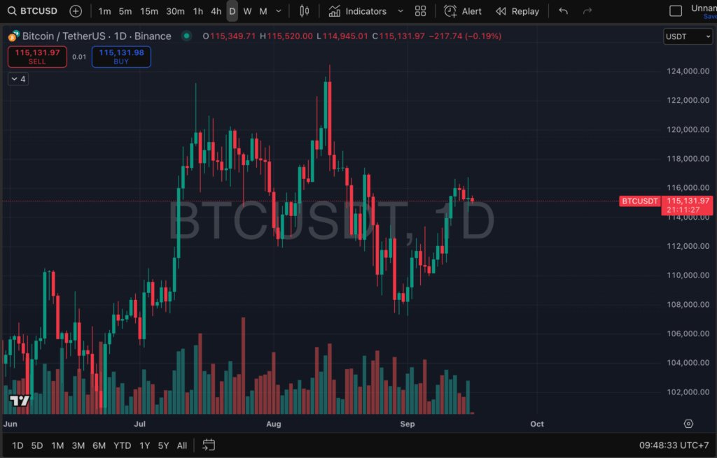 อัพเดทตลาดคริปโต : จับตาบิทคอยน์ทดสอบแนวต้าน $116,000 ก่อนการประชุม Fed 18 ก.ย. นี้