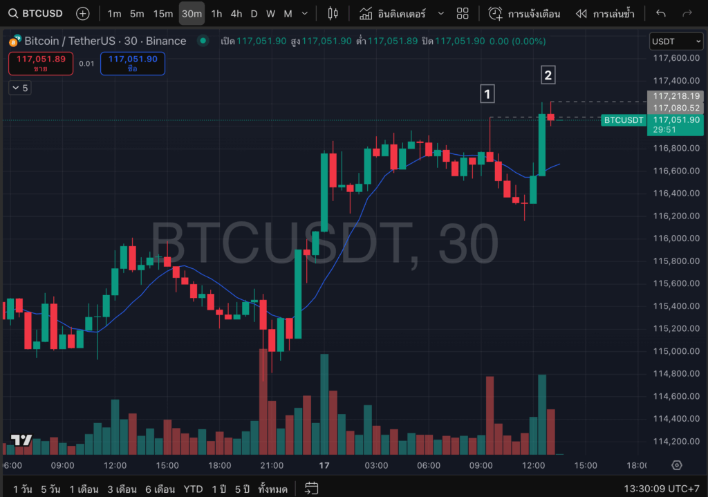ตลาดคริปโตส่อแววจุดชนวนตลาดกระทิงอีกครั้ง หลังจากราคา Bitcoin ได้พุ่งขึ้นไปแตะระดับ 117,000 ดอลลาร์ ถึงสองครั้งในวันนี้ (17 ก.ย.) ซึ่งถือเป็นราคาสูงสุดในรอบเกือบ 4 สัปดาห์
