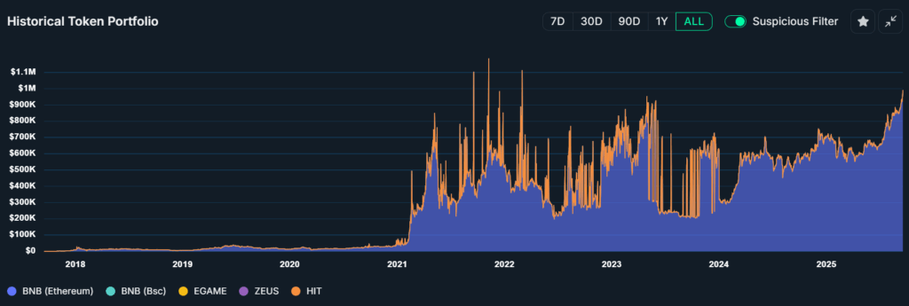 8 ปีผ่านไปเรื่องราวที่น่าเหลือเชื่อก็เกิดขึ้น ในขณะที่นักเทรดคนอื่นๆ เฝ้าจอ ลุ้นราคาขึ้นลงแบบนาทีต่อนาที เจ้าของเหรียญ BNB รายนี้กลับไม่ทุกข์ร้อน จนกระทั่งราคาเหรียญพุ่งทะยานทะลุ $1,000 ต่อเหรียญ ทำให้พอร์ตลงทุนของเขางอกเงยจากเงินแค่ $1,000 กลายเป็น $1 ล้าน หรือประมาณ 30 ล้านบาท เลยทีเดียว
