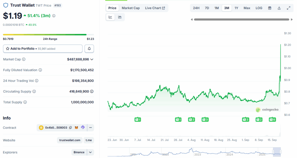 โทเค็น TWT พุ่งสูงขึ้นหลังจากที่ CZ Zhao กล่าวถึง ที่มา: CoinGecko