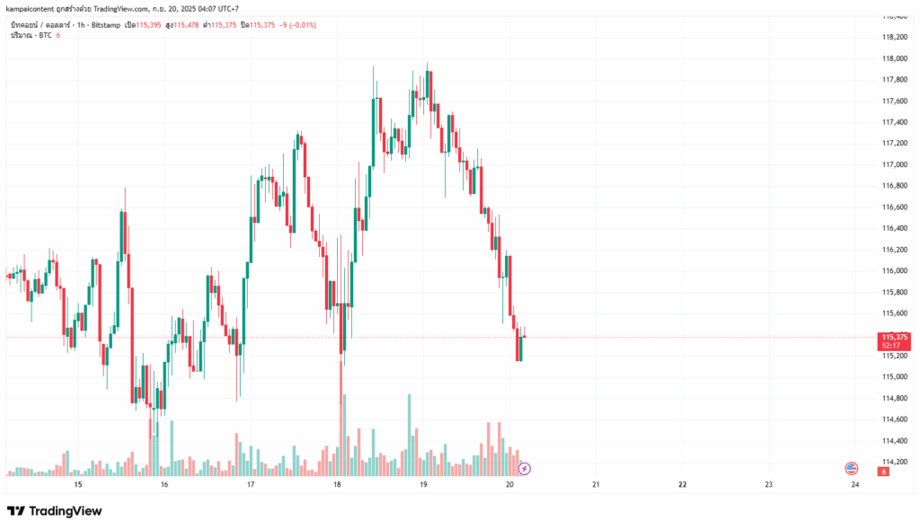 Bitcoin (BTC) ซึ่งเกือบจะทะลุระดับ 118,000 ดอลลาร์สหรัฐไปได้ในวันพฤหัสบดีหลังจากที่ธนาคารกลางสหรัฐฯ (Fed) ได้ปรับลดอัตราดอกเบี้ยเป็นครั้งแรกในปีนี้ ได้ร่วงกลับลงมาอยู่ที่ 115,200 ดอลลาร์ ซึ่งเป็นการลดลง 1.5% ในรอบ 24 ชั่วโมง และทำให้ผลตอบแทนในรอบสัปดาห์กลับมาอยู่ที่ “เท่าทุน”